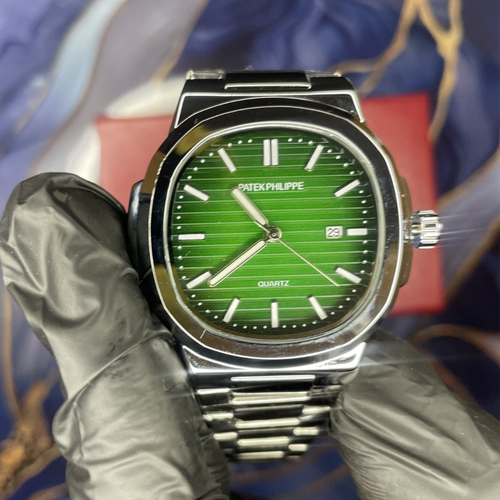 This elegant men's watch features a striking green textured dial paired with a polished stainless steel bracelet for a modern luxury look. The analog quartz movement ensures reliable timekeeping while the minimalist markers provide a clean and sophisticated design. Its versatile style makes it perfect for everyday wear, office outfits, or special occasions. Comfortable, durable, and timeless, this watch adds a refined touch to any wardrobe.